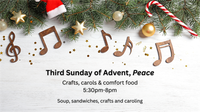 Peace, the third Sunday of Advent- Crafts, Carols and Comfort Food